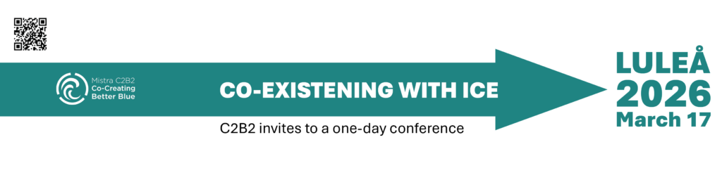 On demand: C2B2 LivingLab North invites to a conference on “Coexisting with ice – in a changing climate”. This one-day on-site event is hosted in Luleå, home port of the Swedish icebreakers. Take the chance to join insightful discussions about changing sea ice in the Bothnian Bay, winter shipping, wind energy, winter tourism and regional development.