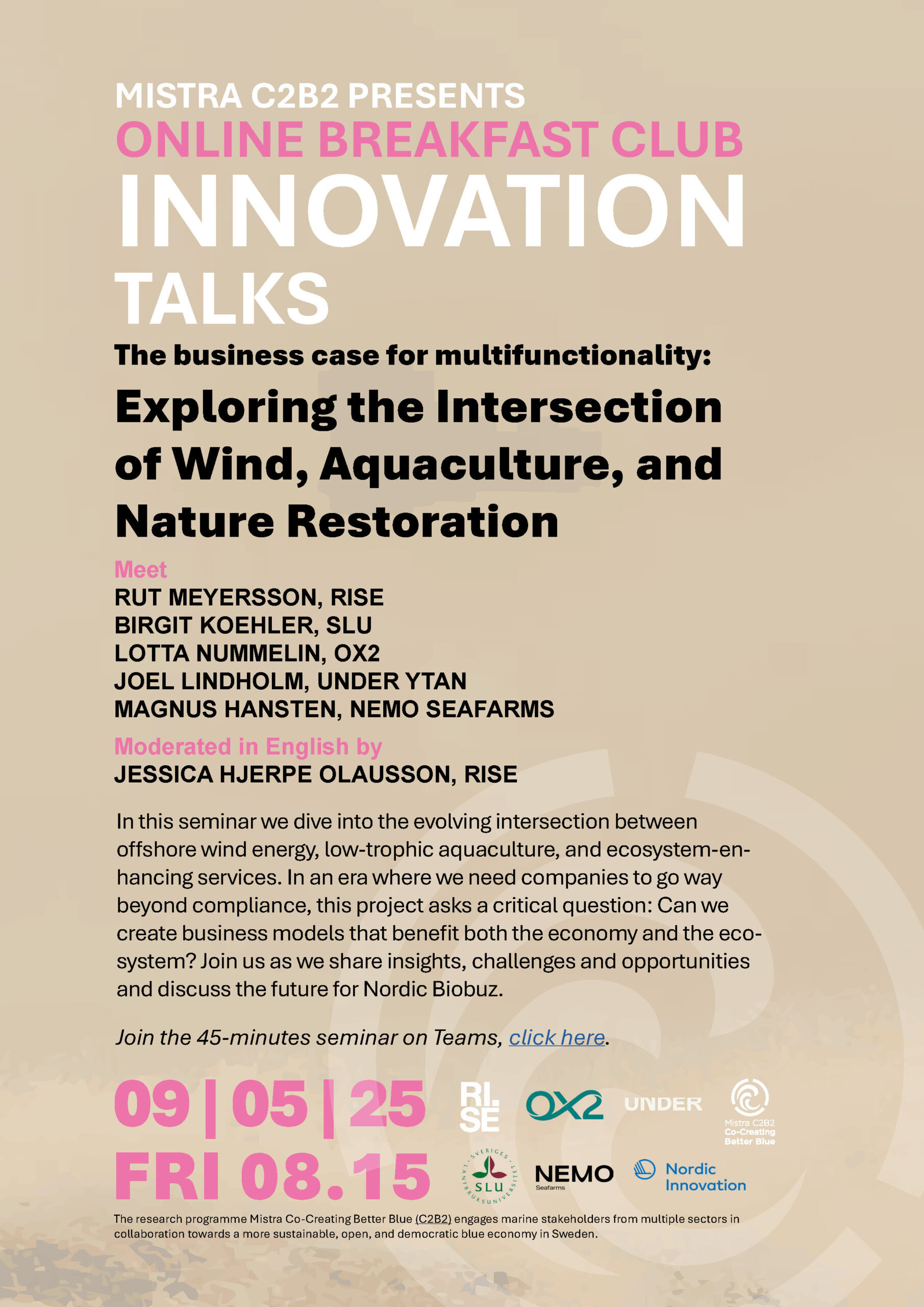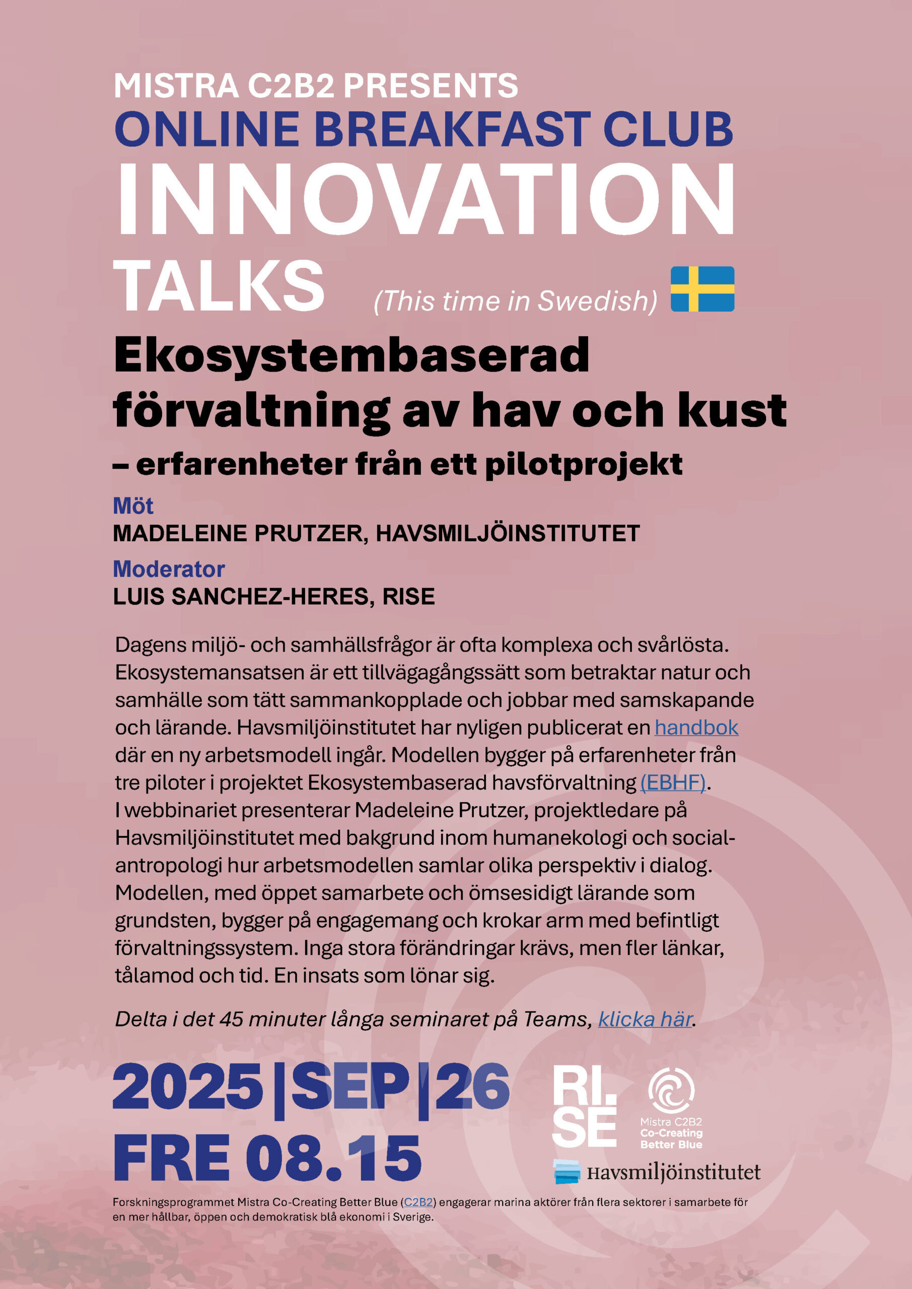 Upcoming Online Breakfast Club / Innovation Talks are announced here as well as on LinkedIn. These meetings are held in English. Subscribers to our newsletter get invites.