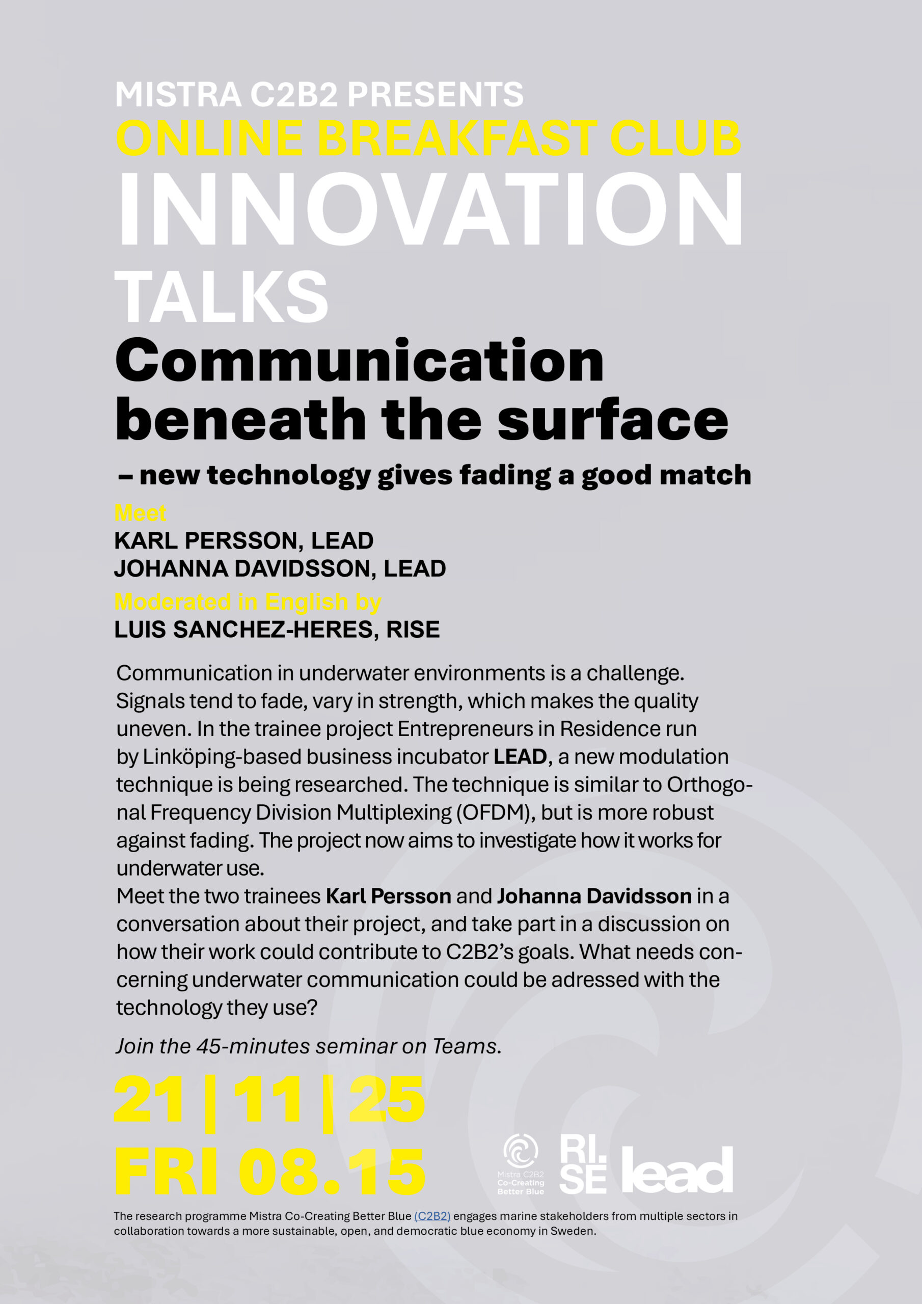 Upcoming Online Breakfast Club / Innovation Talks are announced here as well as on LinkedIn. These meetings are held in English. Subscribers to our newsletter get calendar invites.