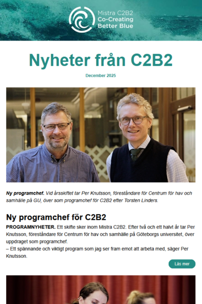 On our LinkedIn account @mistra-c2b2 we post updates and info every week, about activities related to C2B2. Posts are in both Swedish and English.